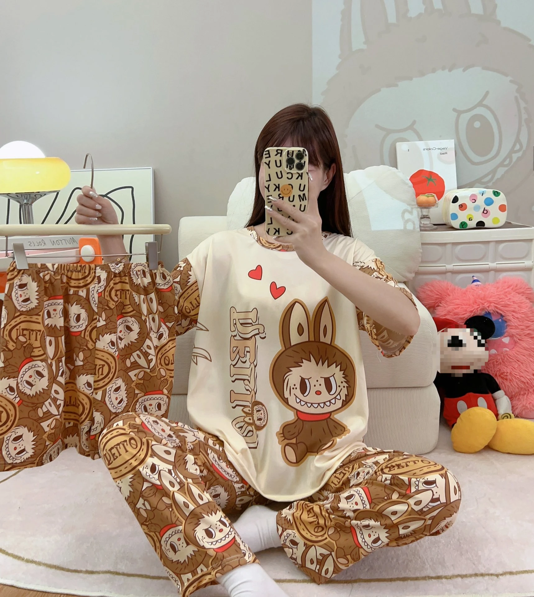 طقم بيجامات أزياء نسائية كورية 3 قطع