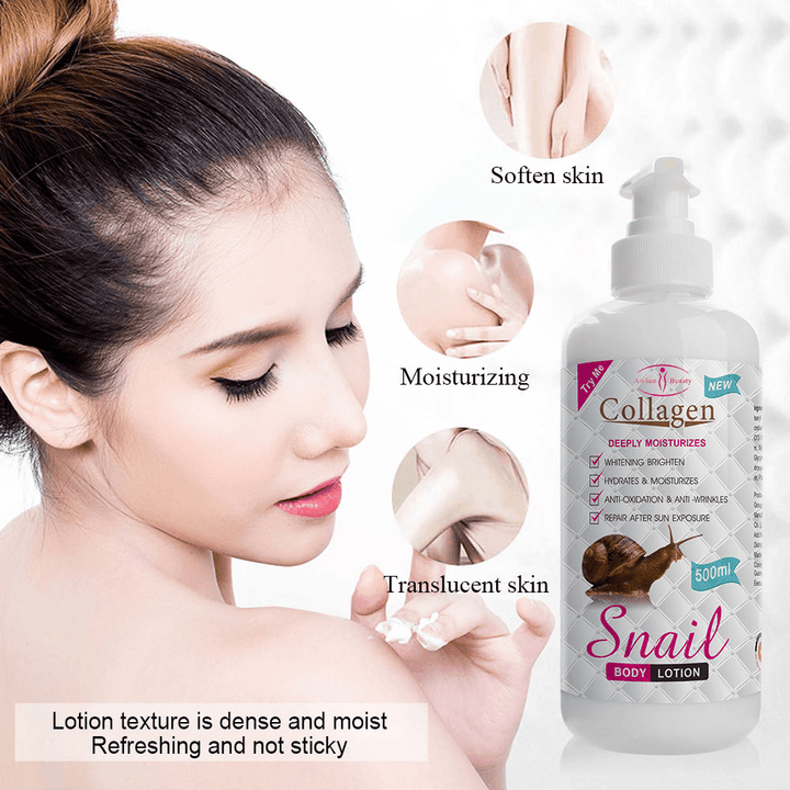 - لوشن الكولاجين والحلزون - إصلاح مكثف لبشرة ناعمة وطرية: جددي بشرتك باستخدام لوشن الجسم بالحلزون. يعمل هذا اللوشن الإصلاحي المكثف على استعادة الرطوبة، مما يجعل بشرتك تشعر بالنعومة والطراوة والتجدد بشكل لا يقاوم. قولي وداعًا للجفاف.