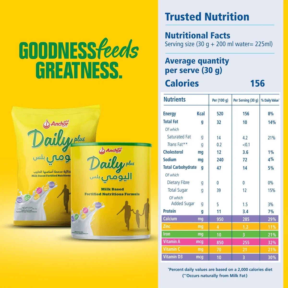 - مدعم بالحديد وفيتامين سي وفيتامين أ والزنك وفيتامين د3