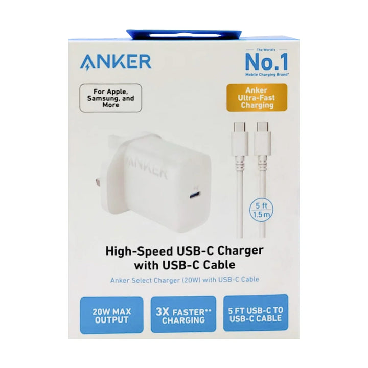 Whether you're at home, in the office, or on the go, the Anker Adapter 20W with USB-C to USB-C Data Sync and Charging Cable in White is a reliable and convenient choice for keeping your devices powered up and ready to use. Its sleek design and high-quality materials make it a durable and long-lasting accessory for all your charging needs.