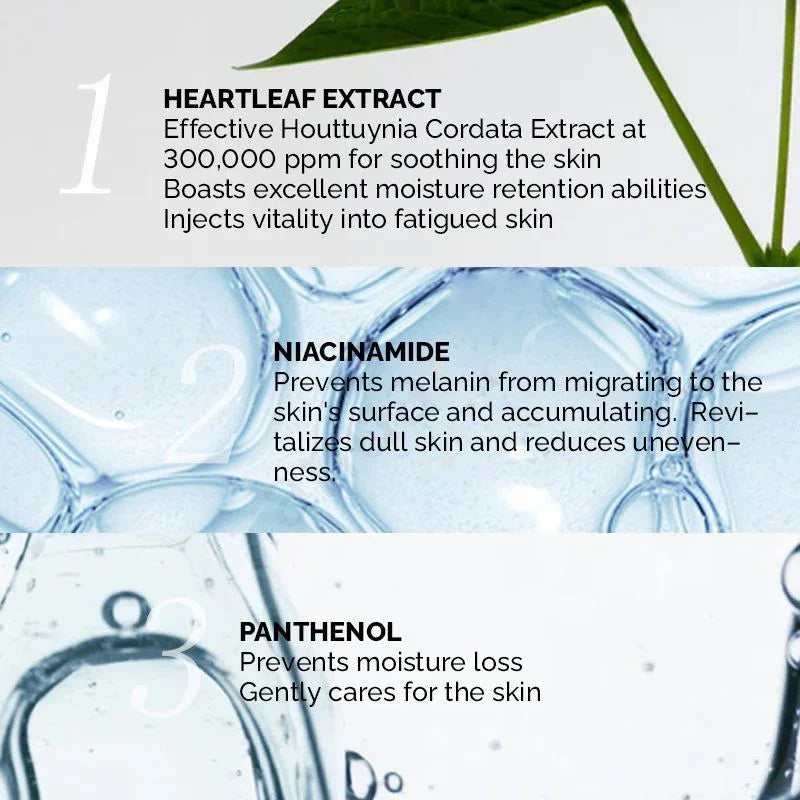 صُنعت تركيبته بعناية فائقة، وتحتوي على مكونات عضوية واقية من الشمس، مثل مستخلص نبات الهوتوينيا كورداتا والبانثينول، لتوفير فوائد مُهدئة ومرطبة لبشرتكِ. لا يقتصر استخدام مستخلص نبات الهوتوينيا كورداتا على تهدئة بشرتكِ فحسب، بل يُلبي أيضًا احتياجات البشرة الحساسة، مما يجعله خيارًا مثاليًا لأصحاب البشرة الرقيقة. كما أن وجود البانثينول يُحبس الرطوبة داخل بشرتكِ، مما يُضفي عليها تأثيرًا مُرطبًا، ويُساعد على تهدئتها بشكل عام.