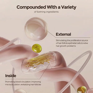 أعيدي الحيوية لشعرك من الجذور إلى الأطراف باستخدام تركيبة نمو الشعر العشبية الغنية بالجينسنغ والسمسم الأسود والريشي. يحفز هذا المزيج الطبيعي الدورة الدموية في فروة الرأس ويعيد تنشيط البصيلات الخاملة لتقليل تساقط الشعر واستعادة كثافته الطبيعية.