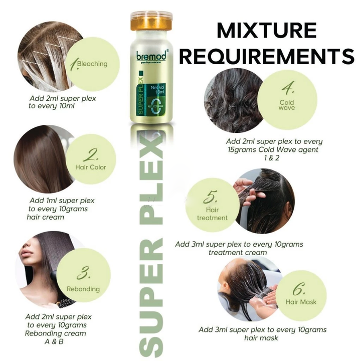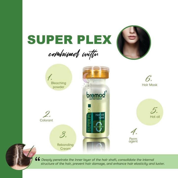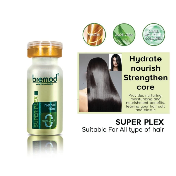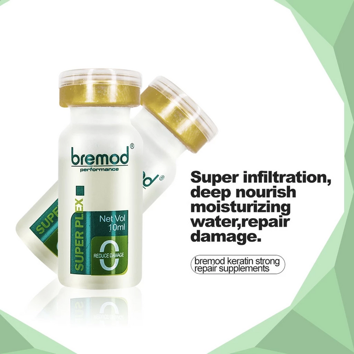 - Give your hair professional salon care at home with Bremod Super Plex Keratin Hair Repair Supplement. This 10ml concentrated formula is enriched with plant-based keratin and small-molecule collagen extract to deeply penetrate, repair, and restore damaged hair from chemical treatments and heat styling.