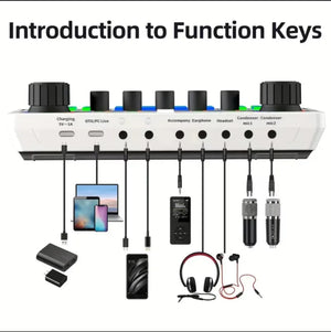 - [حزمة استوديو التسجيل الوظيفية] يحتوي جهاز تغيير الصوت هذا على تأثيرات صوتية متعددة. يمكنك الاتصال بأجهزة مختلفة (هاتف محمول/كمبيوتر/كمبيوتر محمول) باستخدام طرق اتصال مختلفة. قم بتغيير صوتك في أي وقت وفي أي مكان، واتصل بالأصدقاء، ودردش على تطبيقات التواصل الاجتماعي المختلفة، وبث مباشر وغن، وسجل مقاطع فيديو على TikTok وYoutube وما إلى ذلك. ستجلب لك مجموعة معدات البث الصوتي المزيد من المرح وتجعل تسجيلك أكثر إبداعًا.