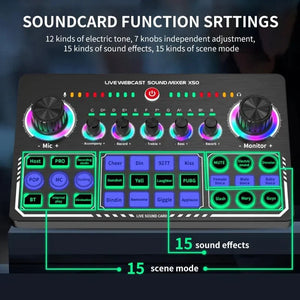- [مجموعة معدات البث الاحترافية] مجموعة معدات البث مزودة ببطاقة صوت X50 وميكروفون BM800، وذراع مقص تعليق قابل للتعديل للميكروفون، وحامل صدمات، وفلتر بوب، وغطاء رغوي مضاد للرياح، وكابل طاقة، وبطاقة صوتية حية. تم تصميم مجموعة استوديو التسجيل الاحترافية هذه للبث والبث المباشر وتسجيل الموسيقى والفيديو القصير. ما تحصل عليه هو مجموعة كاملة من مجموعة معدات البث الاحترافية.