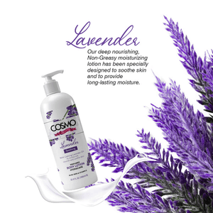 لوشن الجسم باللافندر ينعم البشرة ويرطبها. مصنوع من زيوت اللافندر الأساسية وفيتامين إي. هذا المستحضر خفيف وسريع الامتصاص. تم تركيبه بعناية لترطيب بشرتك وتركها متوهجة صحية طبيعية. يرطب لوشن الجسم باللافندر البشرة بعمق ويمنحها نعومة ومرونة طوال الوقت مع ترك الجسم برائحة اللافندر اللطيفة. في كوزمو، نحن نهتم بالطقوس التي تدعم العناية الذاتية. يعد وضع لوشن الجسم الخاص بنا دعوة للتوقف وتجديد النشاط والاتصال بجوهرك. اشعر بقوى اللافندر المريحة والمهدئة مع هذا التآزر المرطب للغاية من النباتات والزيوت المغذية وفيتامين إي، مثالي لجميع أنواع البشرة، غير دهني، ويمتص بسرعة، يمكن استخدام لوشننا على اليدين والجسم والقدمين.