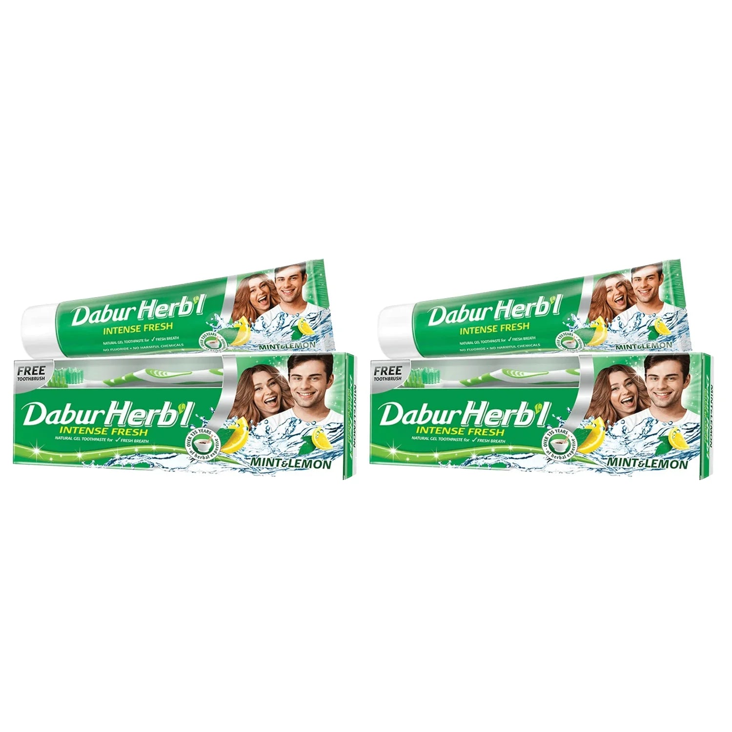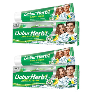معجون أسنان دابور هيربال إنتنس فريش جل مع فرشاة أسنان مجانية - 150 جرام × قطعتين (عرض)