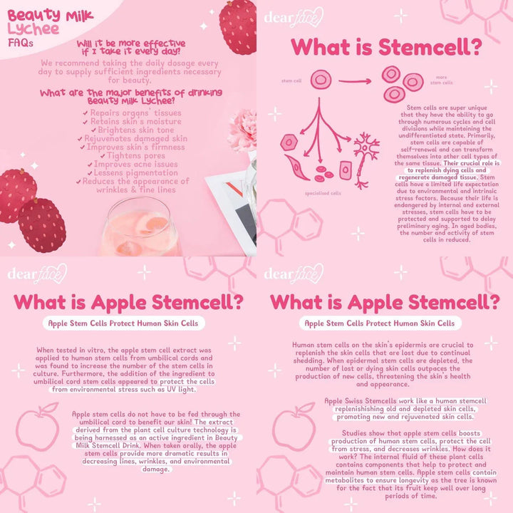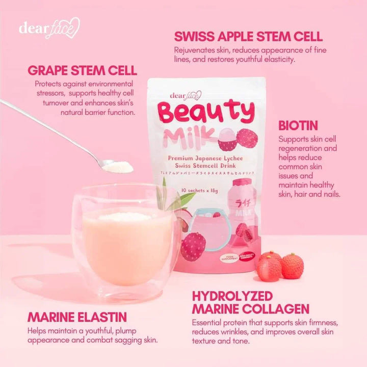 عزيزي حليب تجميل الوجه العزيز - مشروب الليتشي المعزز بالخلايا الجذعية (10 أكياس)