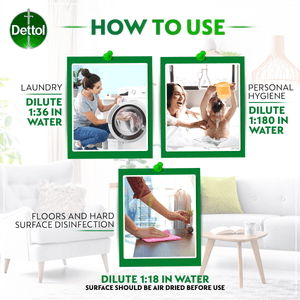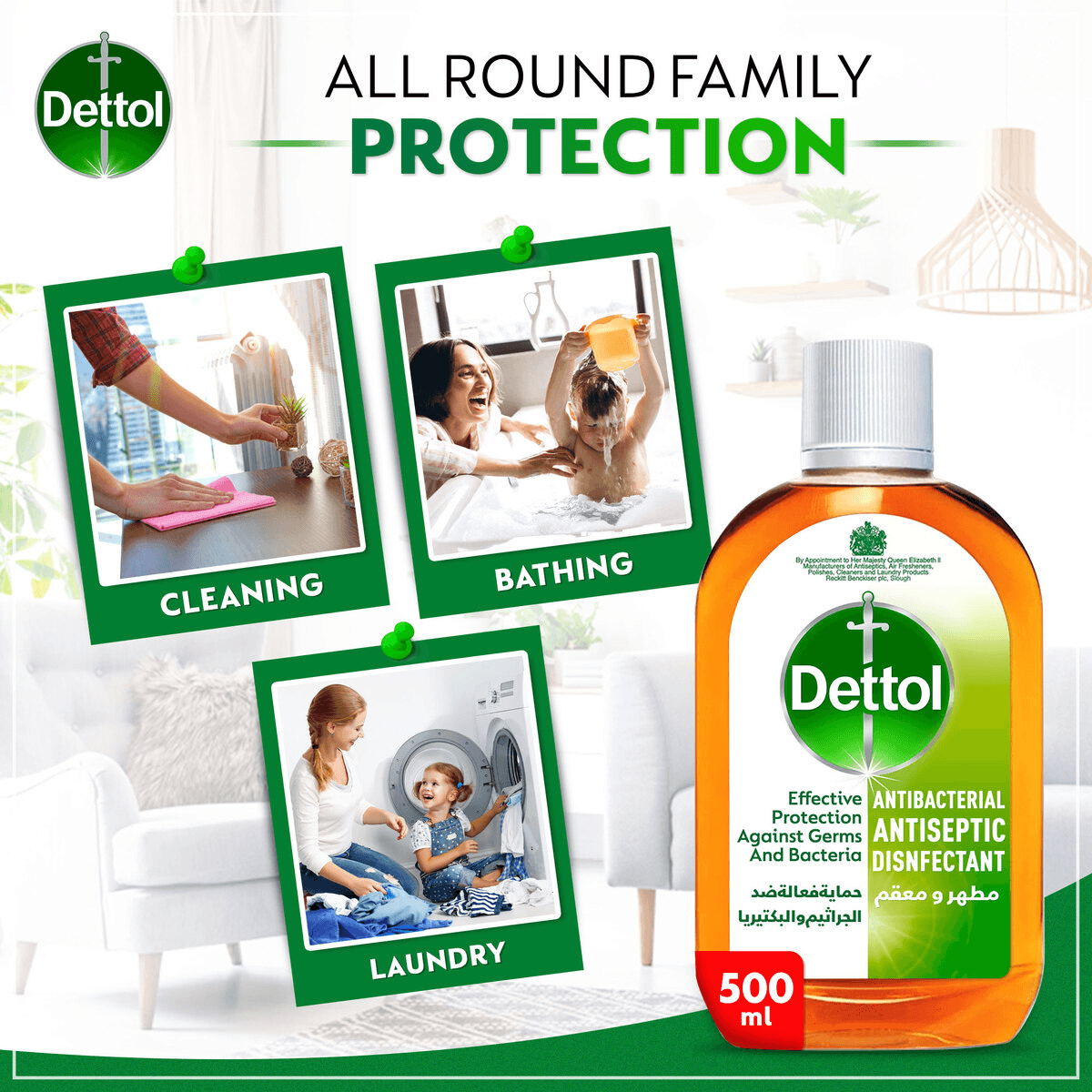 - محلول مطهر مركّز: يوفر سائل ديتول المطهر حماية فعّالة ضد الجراثيم والبكتيريا