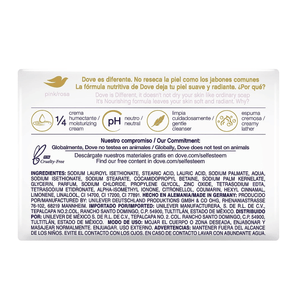 - تغذية طبيعية للبشرة: يحتوي صابون الجمال الوردي من دوف على ربع كريم الترطيب المميز لدينا، مما يضمن تغذية بشرتك بعمق مع كل غسلة.