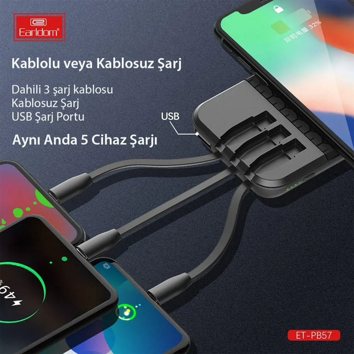 باور بانك لاسلكي من إيرلدوم بسعة 10000 مللي أمبير/ساعة ET-PB57