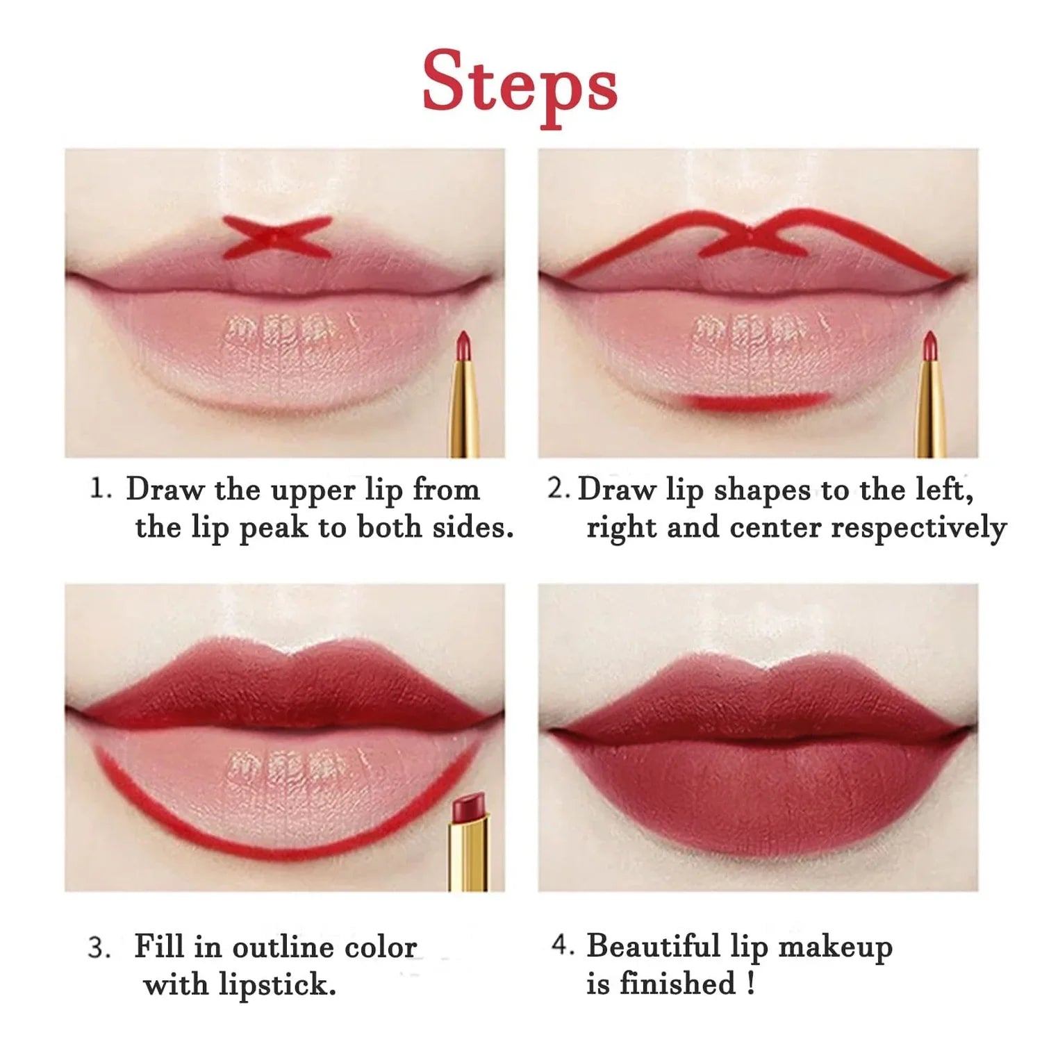 سهل الاستخدام: يسمح محدد الشفاه بتحديد الشفاه بشكل نظيف، بينما يملأ أحمر الشفاه دون عناء.