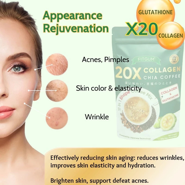 ارتقِ بمستوى روتينك اليومي مع قهوة شيا كولاجين 20X كولاجين من فيتجم، وهي خليط قهوة شيا الثوري 11 في 1 المصمم لتعزيز صحتك وجمالك من الداخل إلى الخارج. تحتوي كل علبة على 10 أكياس مريحة من مزيج القهوة اللذيذ هذا المشبع بالكولاجين والجلوتاثيون الفاخر، والمدعوم بالتكنولوجيا اليابانية المتقدمة.