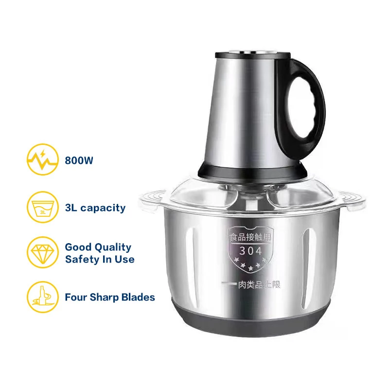 معالج طعام وخلاط لحوم من الفولاذ المقاوم للصدأ ومفرمة طعام - 3 لتر