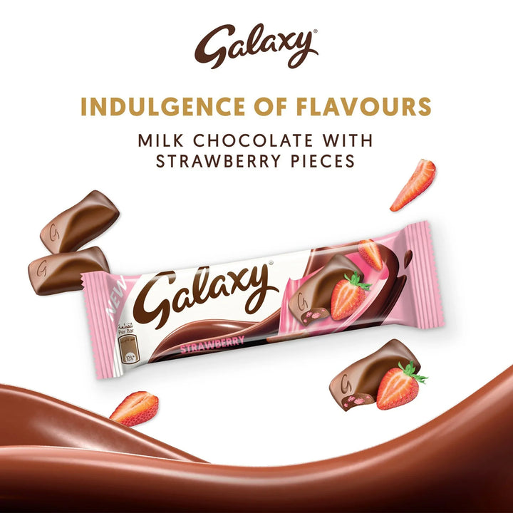 شوكولاتة الحليب بنكهة الشوكولاتة بالحليب مع الفراولة: انغمس في المذاق الناعم والكريمي لشوكولاتة جلاكسي وتذوق طعم شوكولاتة الحليب الناعم مع الفراولة عندما تكون في مزاج جيد لشيء رائع.