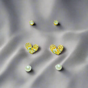 أقراط مرصعة بالألماس من الفولاذ المقاوم للصدأ باللون الذهبي على الطراز الكوري، 3 أزواج - 121
