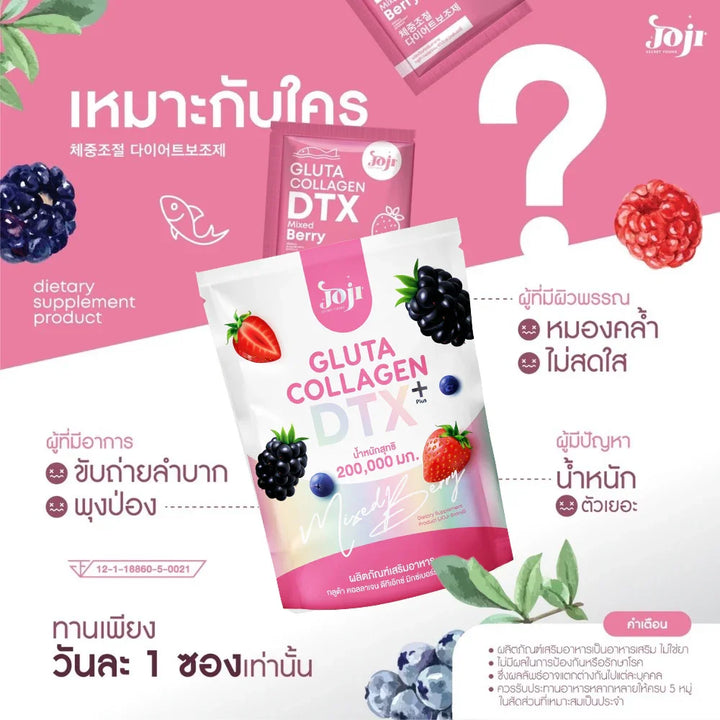 Joji Gluta Collagen DTX+ Mixed Berry Powder - 20g × 10 Sachet