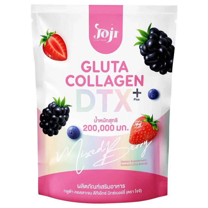 Enjoy glowing, smoother, and healthier-looking skin with Joji Secret Young Gluta Collagen DTX Mixed Berry, a delicious powdered dietary supplement packed with glutathione, marine fish collagen, and natural fruit extracts. Each sachet delivers a refreshing mixed berry flavor made from extracts of strawberry, raspberry, and blackcurrant—with no fishy taste, just fruity goodness.