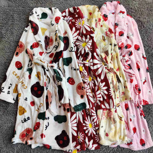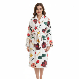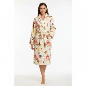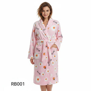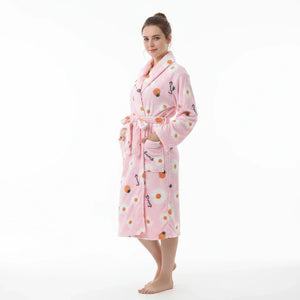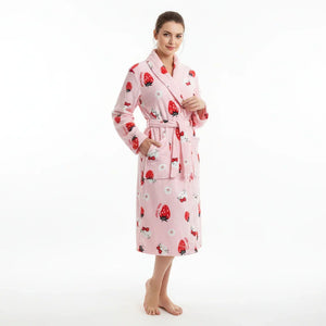 رداء حمام مريح بأكمام طويلة من الفانيلا المرجانية الصوف المرجاني