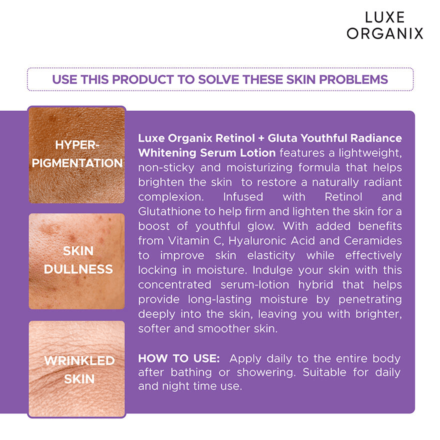 لوشن تبييض البشرة Luxe Organix Retinol + Gluta Youthful Radiance - 350 مل