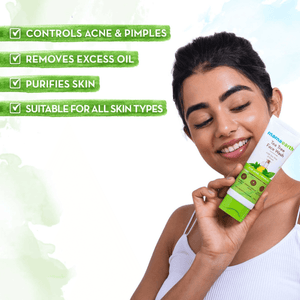 - السيطرة على حب الشباب والبثور: يساعد غسول الوجه اليومي من شجرة الشاي مع النيم من Mamaearth في السيطرة على ومنع تطور حب الشباب والبثور الجديدة من خلال التحكم في إفراز الزيت المفرط.