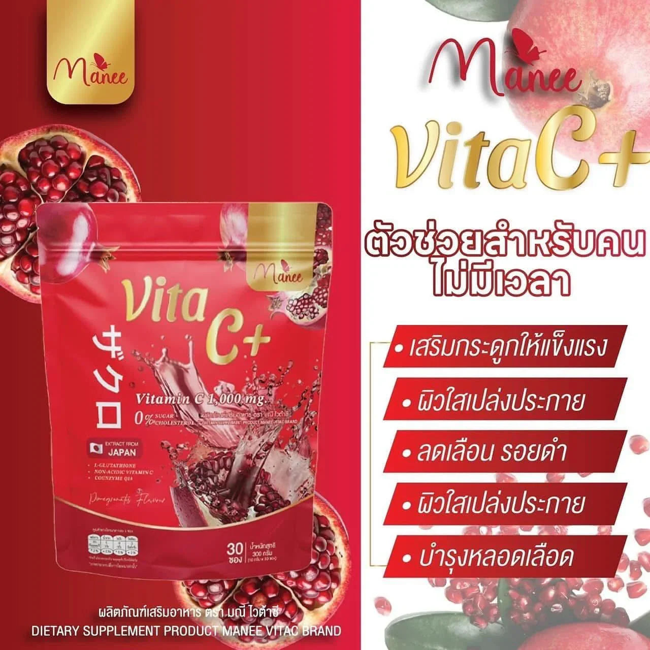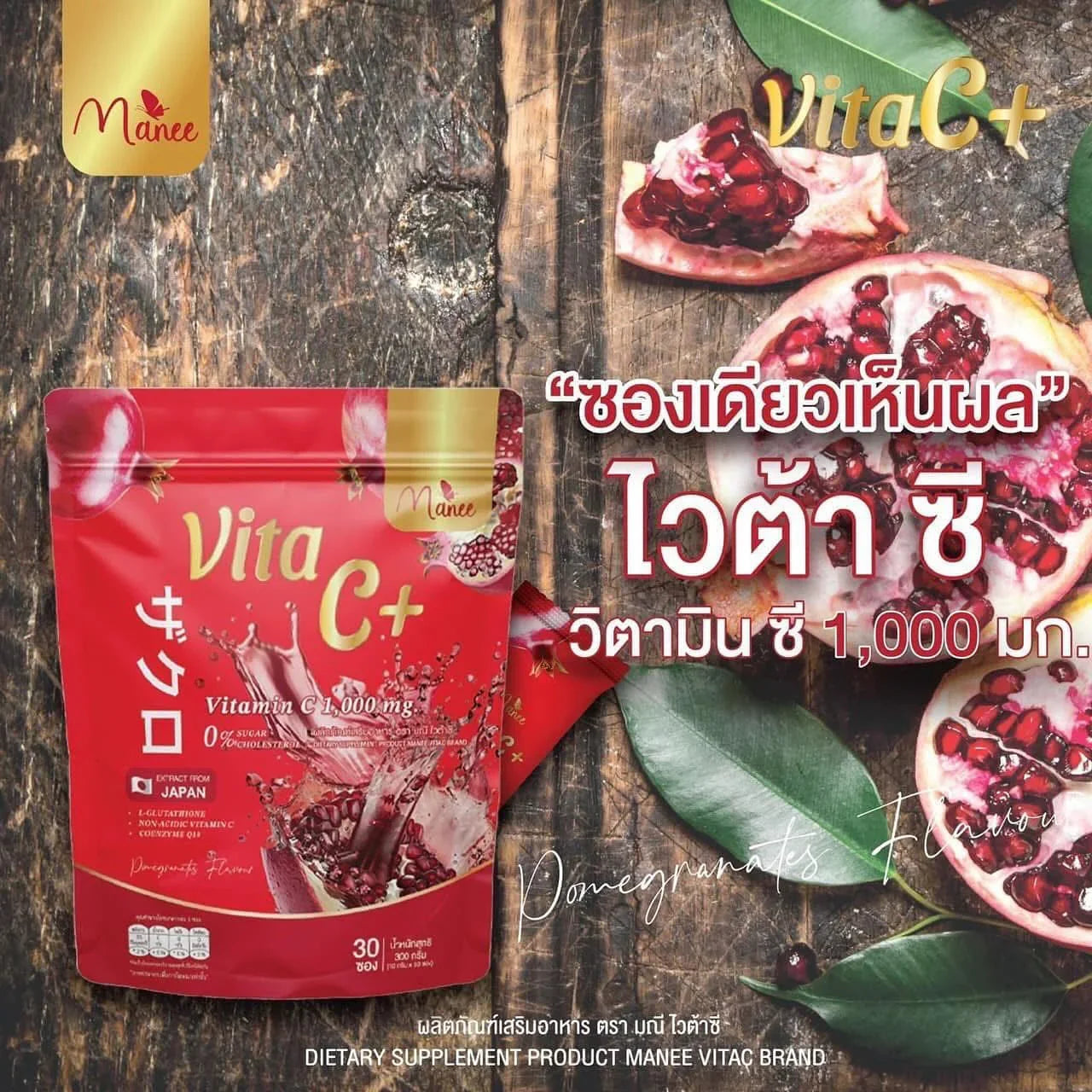 مانيه فيتا سي + بنكهة الرمان - 30 كيس × 10 جم