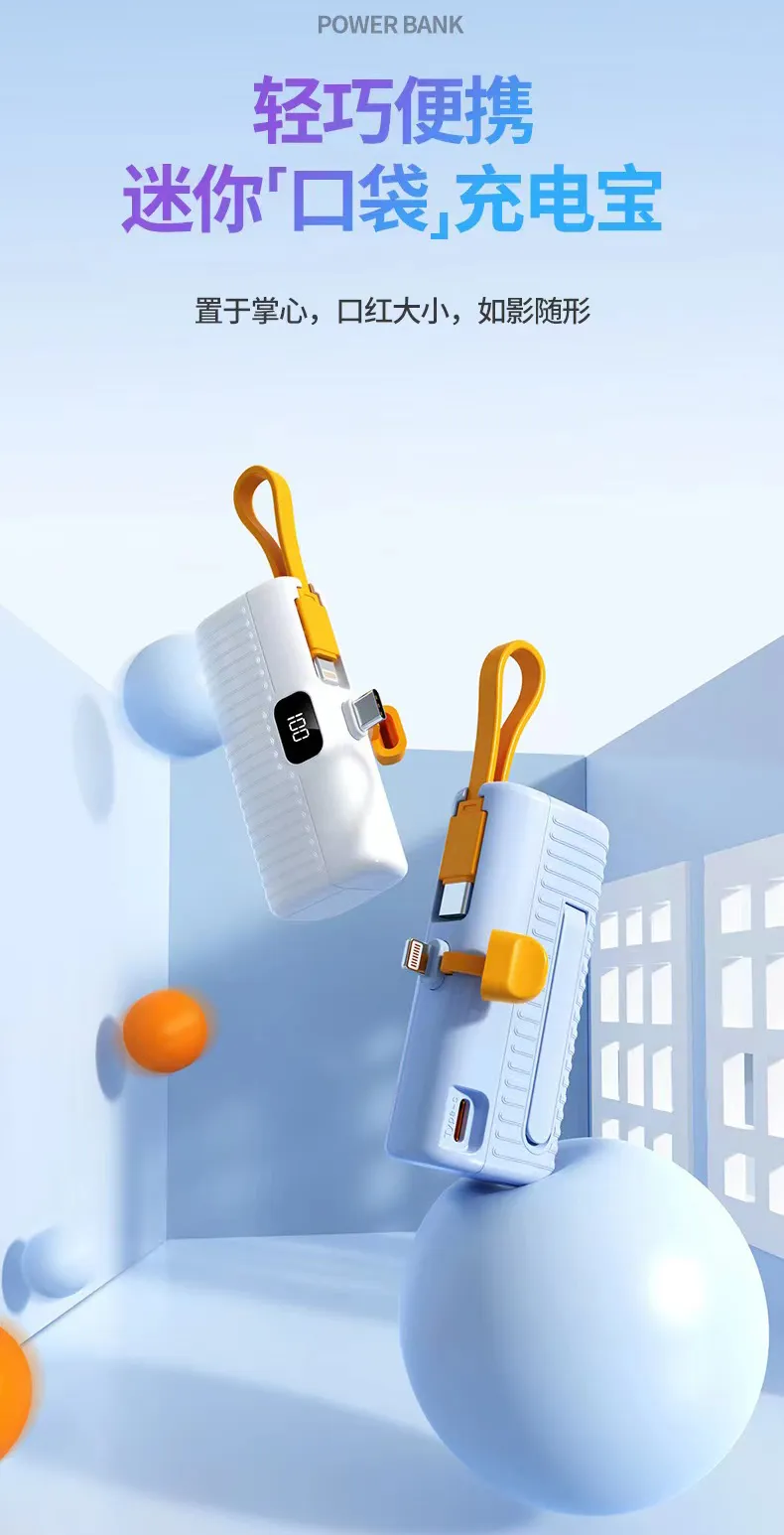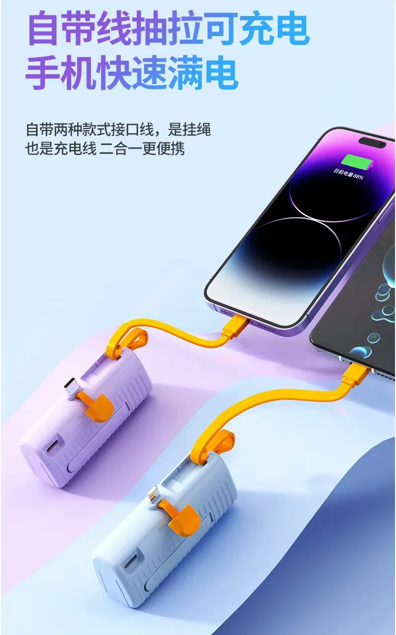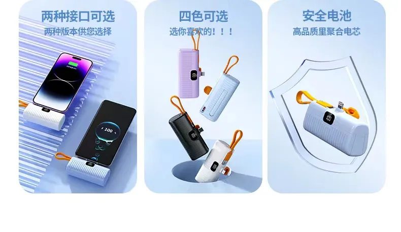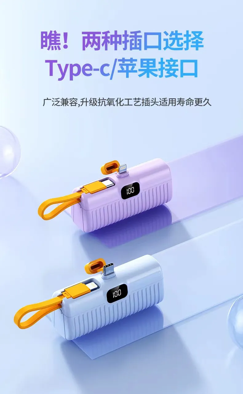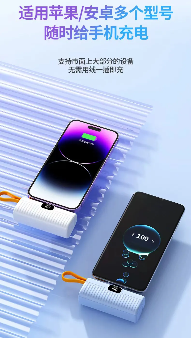 2. بنك الطاقة الكبسولة بسعة 3.7 فولت = 5000 مللي أمبير في الساعة، والذي يمكنه توفير 100% من الطاقة للهاتف المحمول