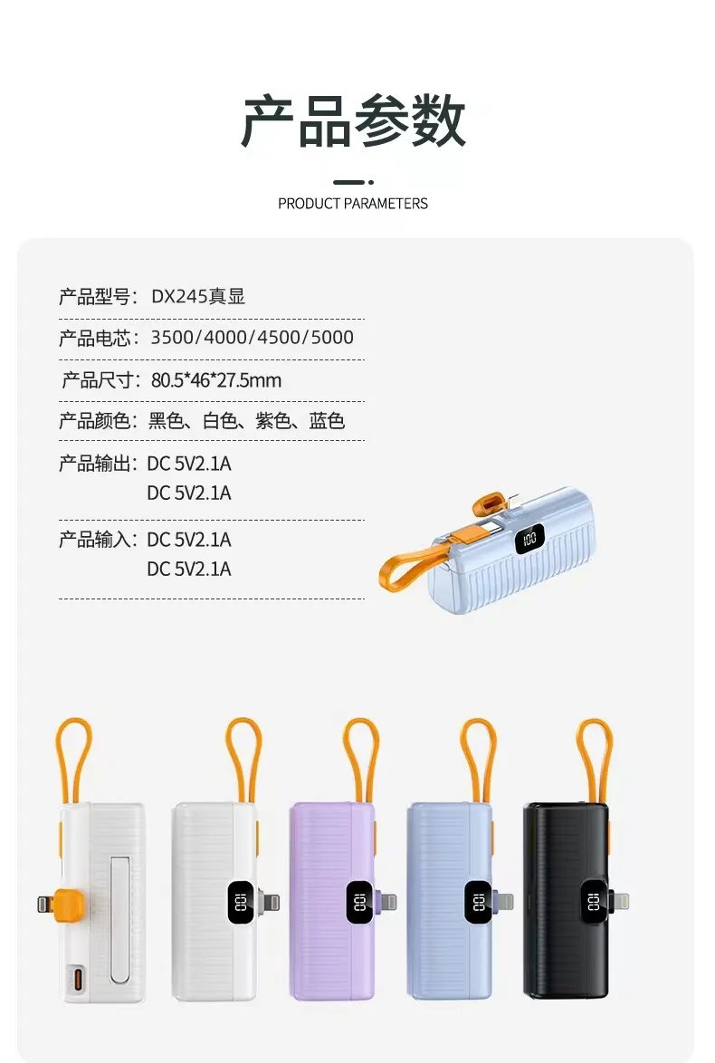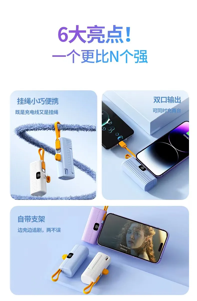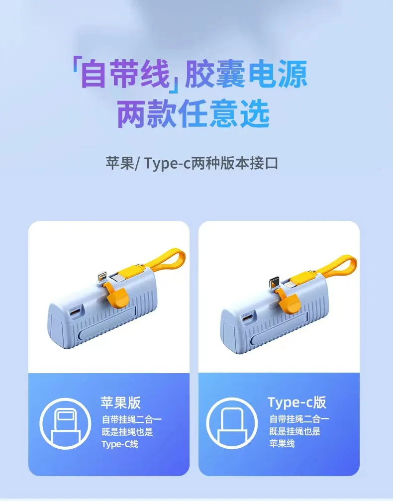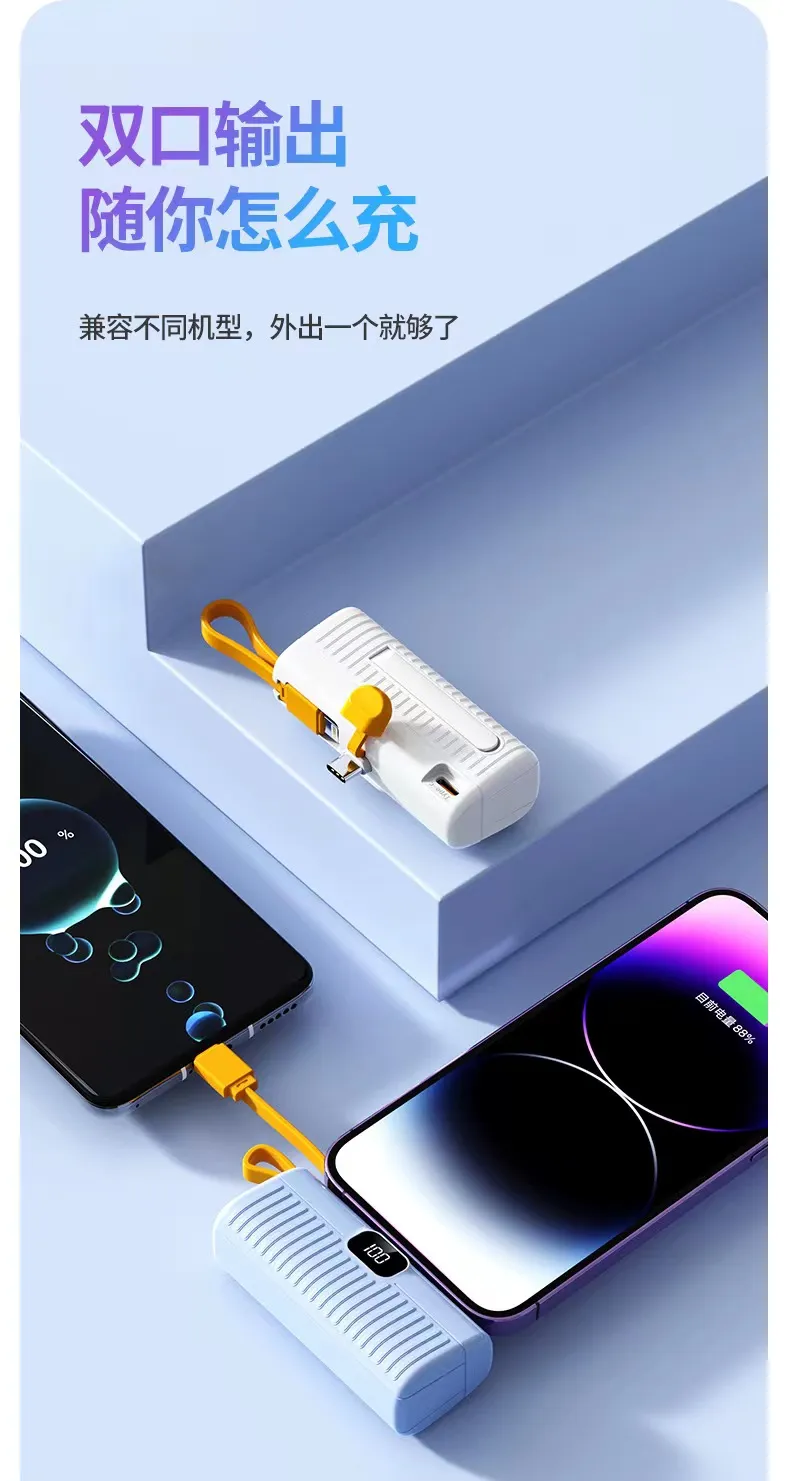 2. بنك الطاقة الكبسولة بسعة 3.7 فولت = 5000 مللي أمبير في الساعة، والذي يمكنه توفير 100% من الطاقة للهاتف المحمول