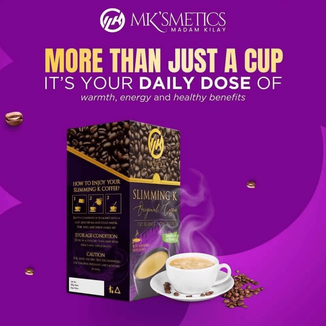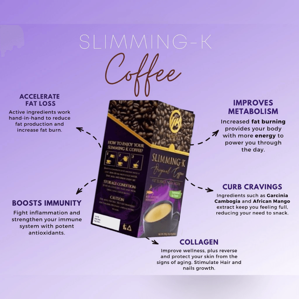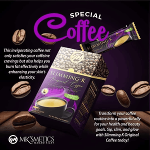 ابدأ يومك بقهوة Slimming K Original Coffee، المزيج المثالي المصمم لتعزيز عملية التمثيل الغذائي لديك ودعم أهدافك في إنقاص الوزن. لا تعمل هذه القهوة المنشطة على إشباع رغبتك في تناول الكافيين فحسب، بل تساعدك أيضًا على حرق الدهون بفعالية مع تعزيز مرونة بشرتك.