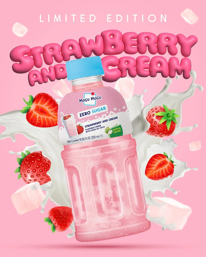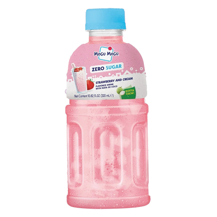 استمتع بالمذاق الكلاسيكي للفراولة والكريمة بطريقة أخف وخالية من الشعور بالذنب! موجو موجو موجو فراولة وقشدة خالية من السكر يمزج نكهة الفراولة الحلوة مع الكريمة الناعمة وناتا دي كوكو المطاطية لتجربة "المضغ والارتشاف" المميزة - الآن بدون سكر. منعشة وممتعة ومرضية مع كل زجاجة.