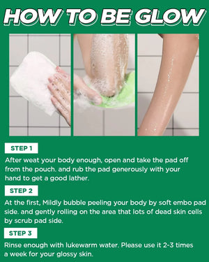 - طريقة الاستخدام: بللي جسمكِ بكمية وفيرة من الماء، وافركي الجانب الأبيض المنقوش على جسمكِ لتكوين رغوة. امسحي جسمكِ بالكامل باستخدام مقشر الجلد الميت للعناية بالكيراتين الفقاعي. استخدمي الجانب الأخضر لتدليك المناطق التي تتكون فيها خلايا الجلد الميتة (المرفقين، الكاحلين، إلخ). اشطفي جسمكِ بالماء الفاتر.