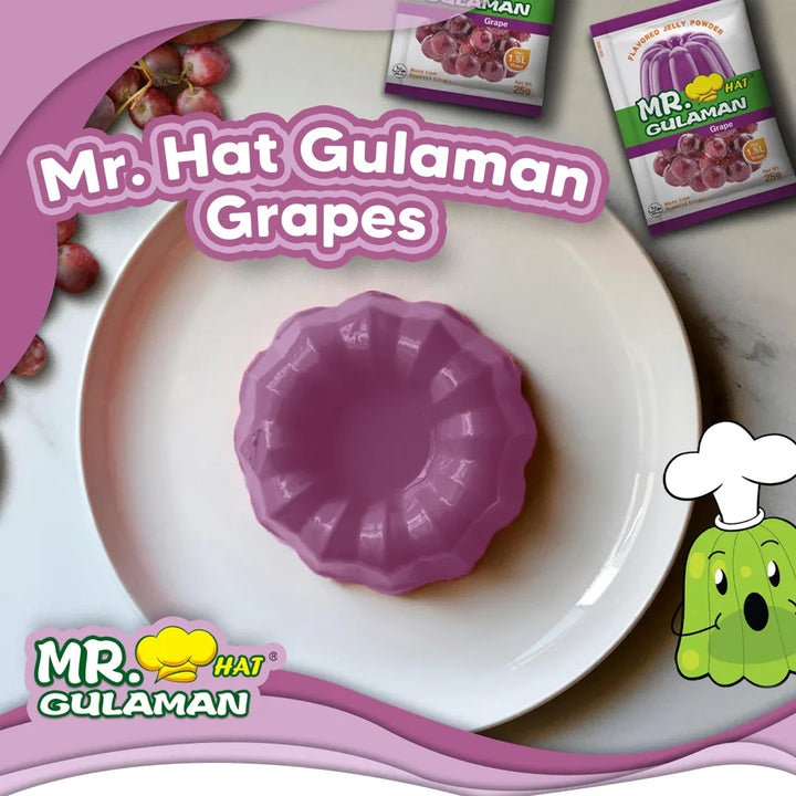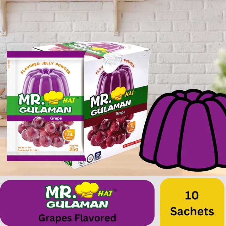 Add a burst of fruity goodness to your desserts with Mr. Hat Gulaman Grape Flavored Jelly Powder! Each pack contains 10 sachets (25g each) of high-quality gulaman made to deliver a smooth, firm, and delicious jelly texture—perfect for a variety of Filipino desserts and beverages.