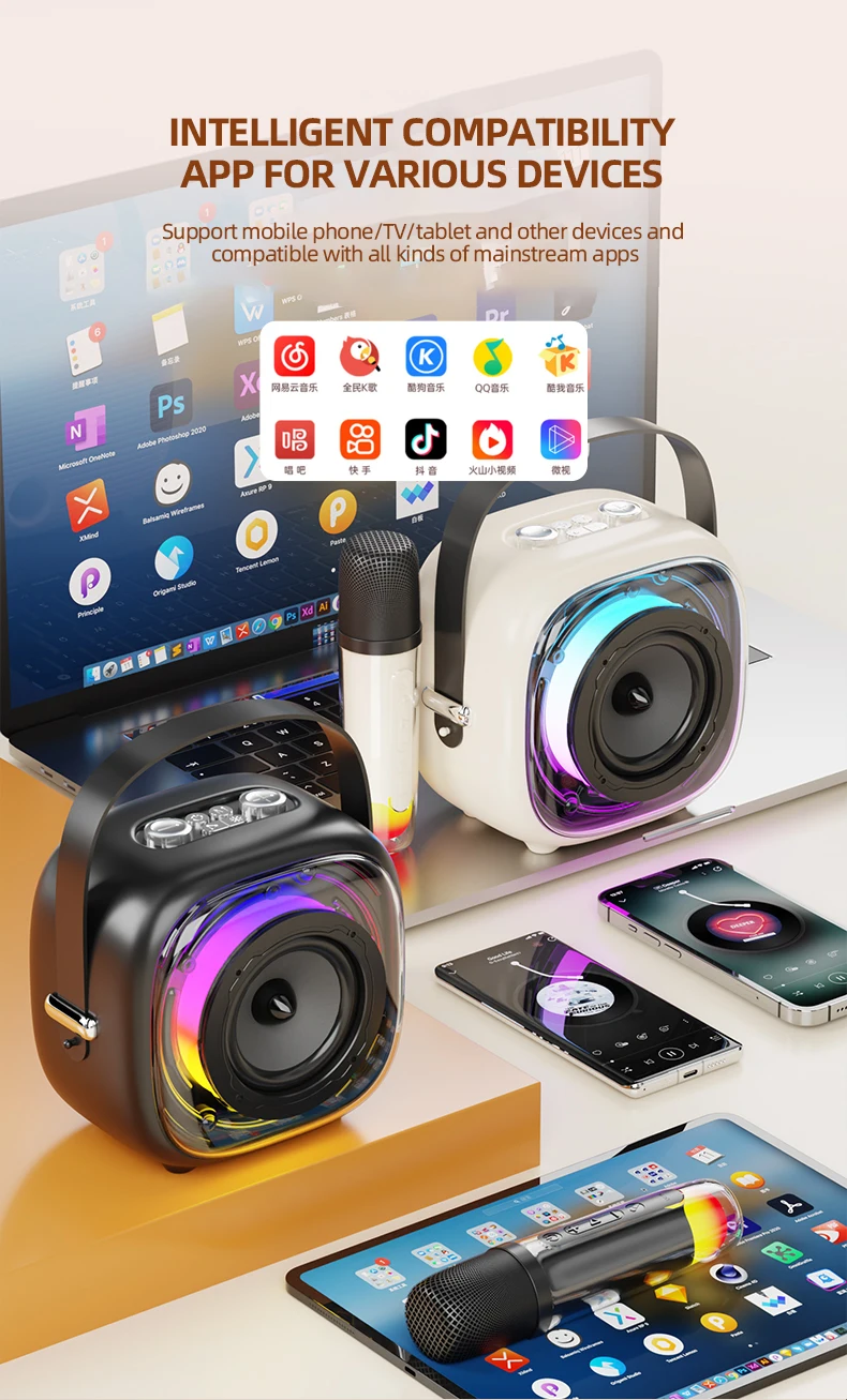 مكبر صوت كاريوكي محمول متعدد الوسائط مزود بميكروفونين - K29