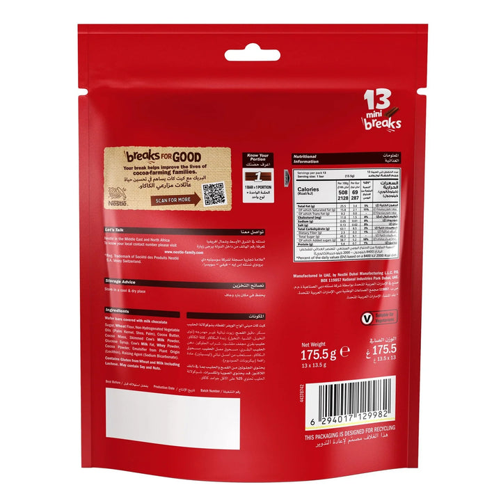 كيس شوكولاتة نستله كيت كات 2 فينجرز ميني - 13 × 13.5 جم (175.5 جم)