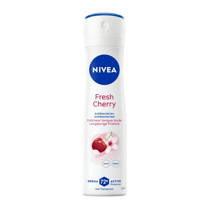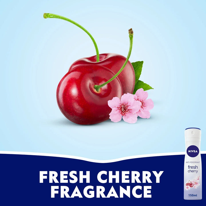 يتميز نيفيا فريش تشيري برائحة الكرز المنعشة والفاكهية، ويوفر حماية فعالة من التعرق تدوم 72 ساعة. لبشرة جافة ونظيفة.