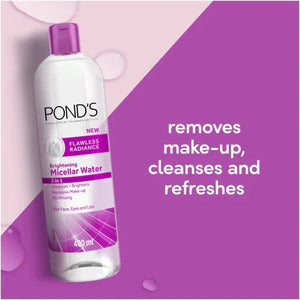 احصلي على بشرة نقية وناعمة ومشرقة مع ماء ميسيلار ماء فلاوليس راديانس 3 في 1 من بوندز - الحل اليومي المتكامل لتنظيف البشرة وإزالة المكياج والعناية بتفتيح البشرة.