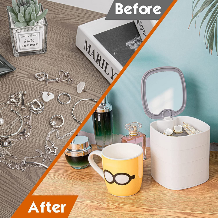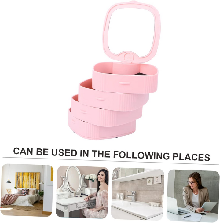 4-layer rotating trays allow easy access to all your jewelry while saving space. Simply twist to open and close.