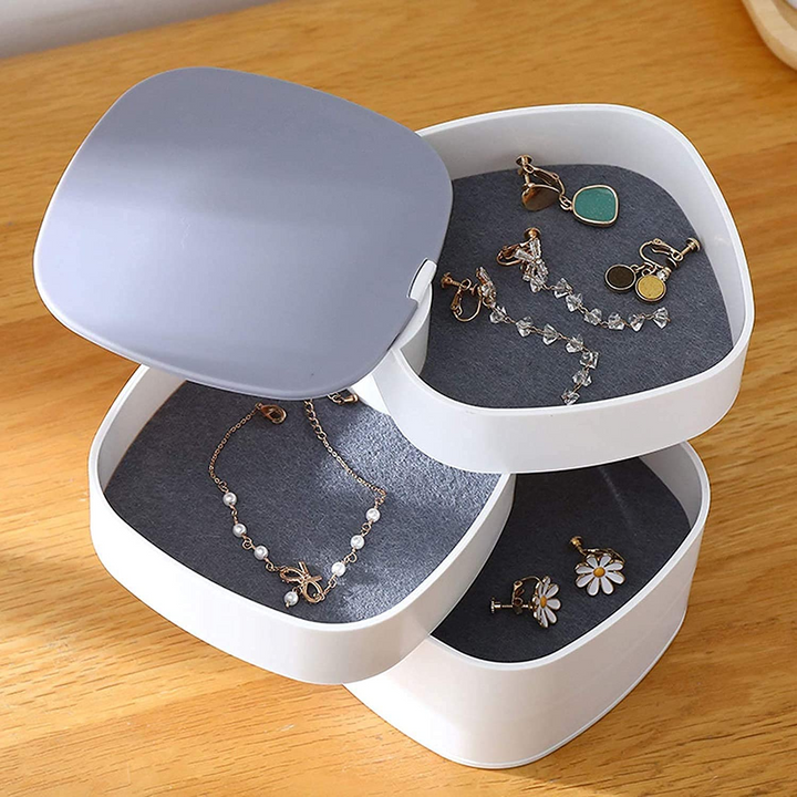 4-Layer Rotating Jewelry Storage Box – Stylish, Compact & Protective