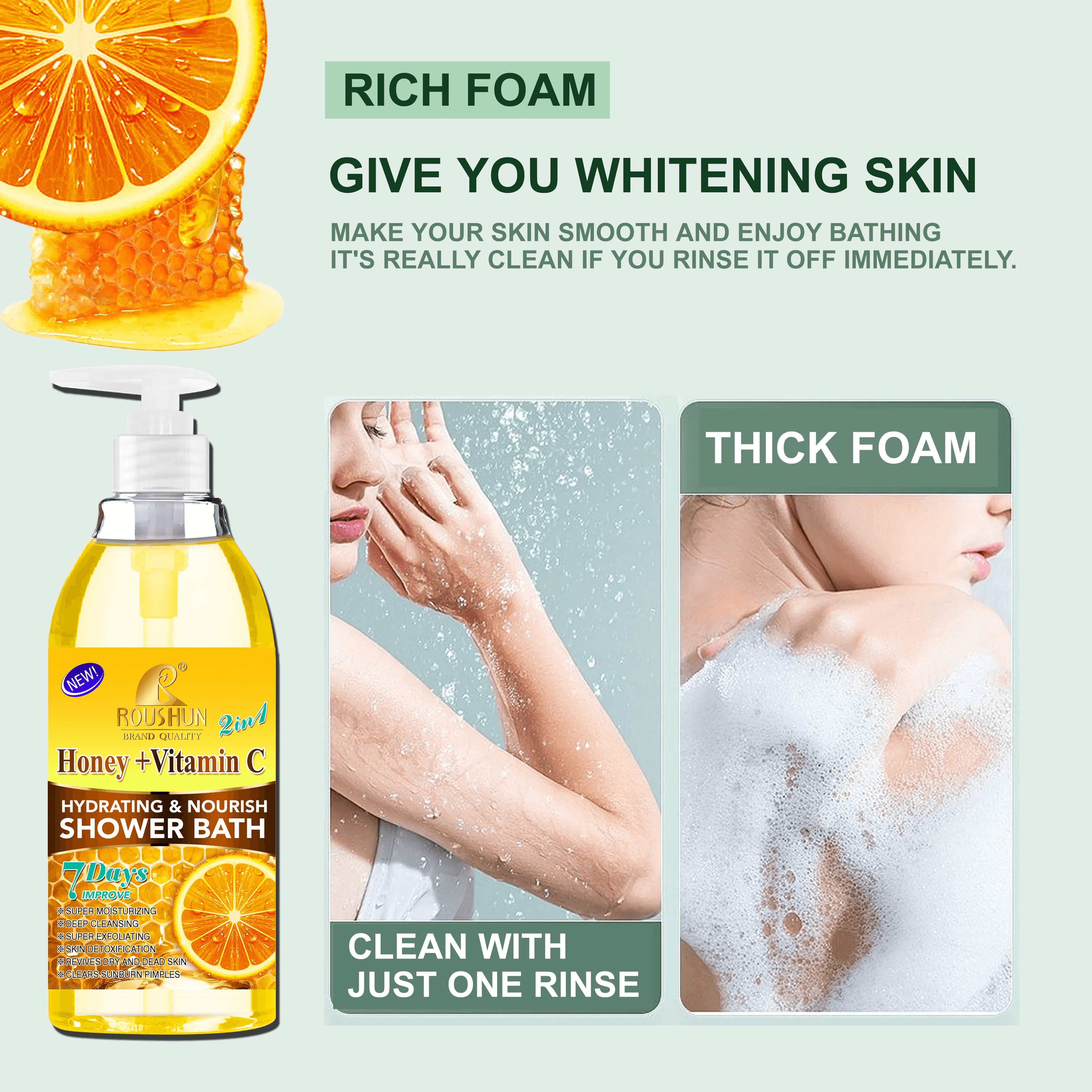 روشان 2 في 1 حمام استحمام بالعسل + فيتامين سي