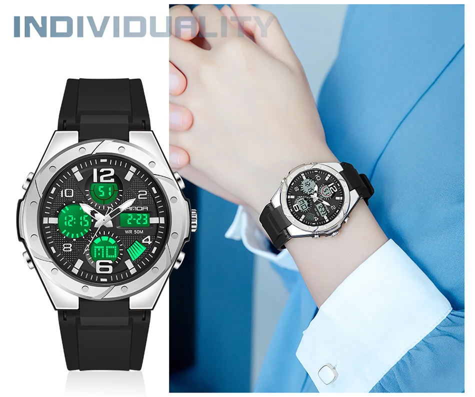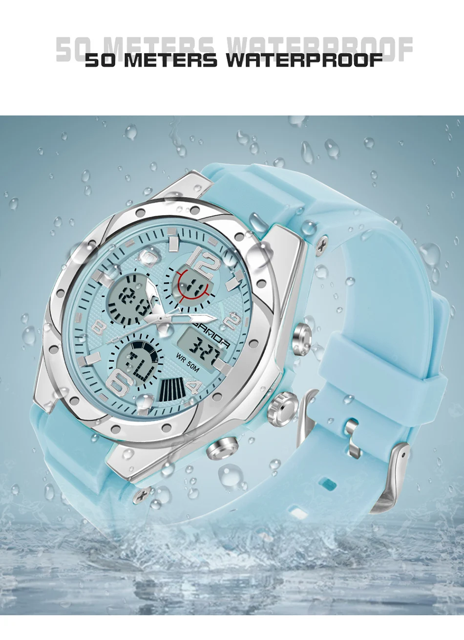 ساعة رياضية رقمية تناظرية تناظرية رقمية LED من ساندا للجنسين - 6062