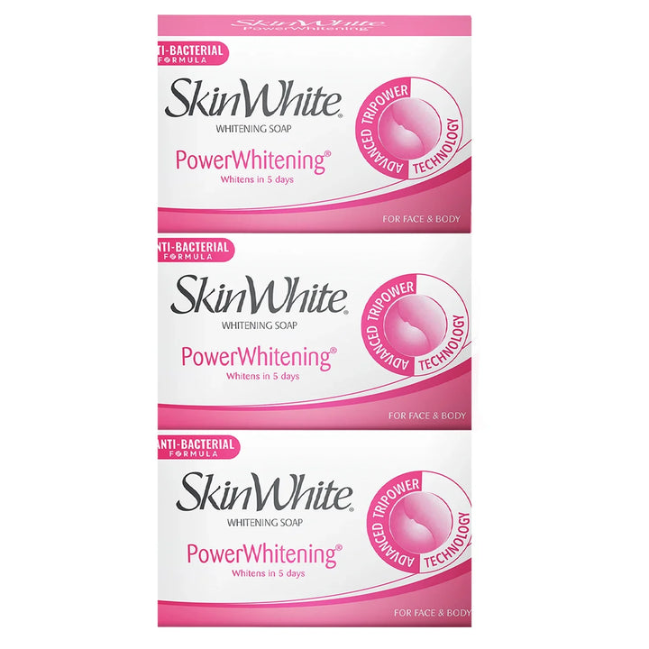 أيها الطموح! جرّب قوة صابون SkinWhite PowerWhitening، المصنوع بتقنية Tripower المتطورة الحصرية لدينا، والتي تُبيض البشرة من العمق. إليك ما يميزه: