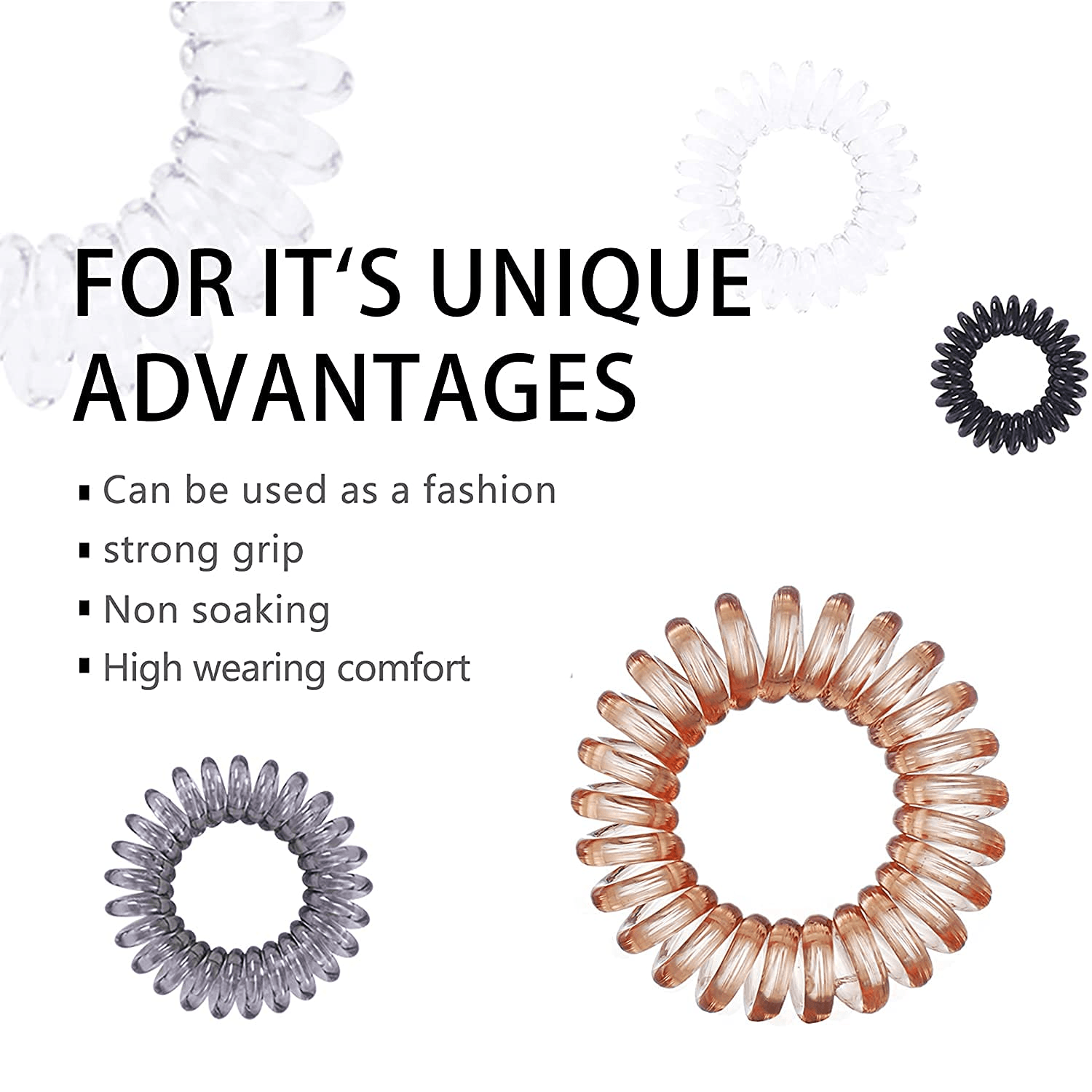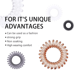 - أفضل ربطة شعر لشعرك: ربطات الشعر مصنوعة من مادة TPU عالية الجودة، ناعمة ومرنة للغاية ومتينة للغاية. يساعد الهيكل البلاستيكي الأملس الحلزوني على منع التشابك وبالتالي يمنع تكسر الشعر عند إزالتها.