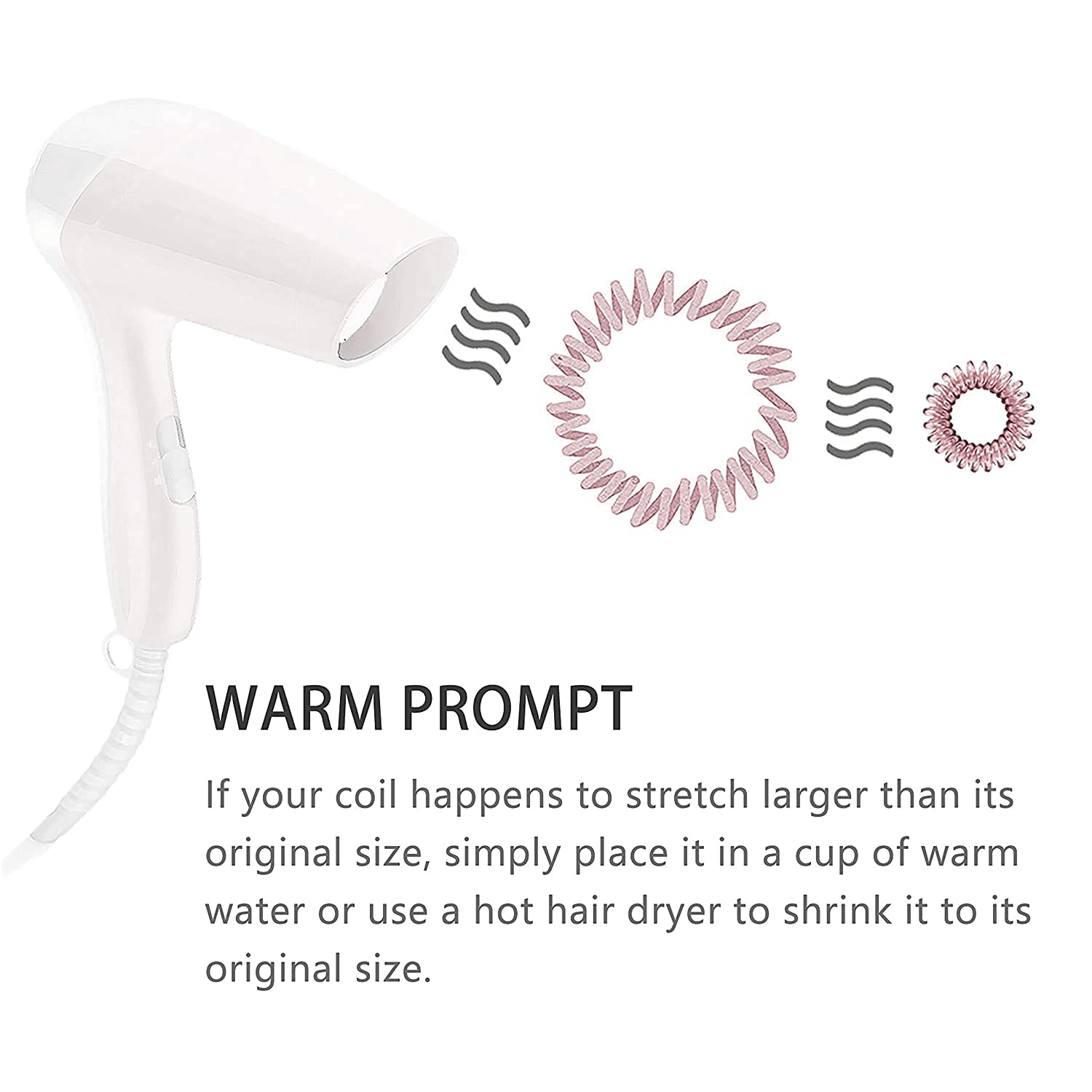 - لا يسبب صداعًا أو تجاعيد في شعرك: يمكن للتصميم الحلزوني والسطح الأملس منع تكسر الشعر وتشابكه عند خلع ربطات الشعر، ويساعدك على الحفاظ على تسريحة شعرك. يعني التصميم الحلزوني اتصالًا مباشرًا أقل بشعرك، ولا يسبب صداعًا للشعر من ذيل الحصان الضيق للغاية.