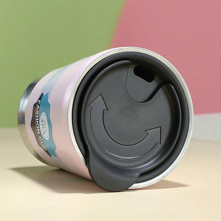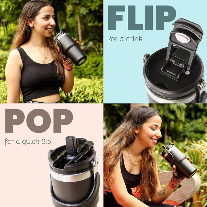 The tumbler features a uniquely designed lid with two flip openings, allowing you to: