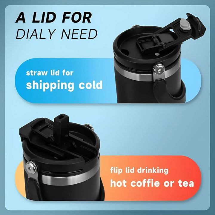 Insulated Stainless Steel Tumbler with Dual-Function Lid and Rotating Handle