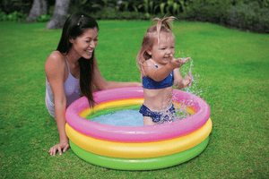 استمتعي هذا الصيف بحمام السباحة Sunset Glow Baby الملون. يحتوي حمام السباحة اللطيف هذا على ثلاث حلقات هوائية ملونة وأرضية ناعمة قابلة للنفخ لتوفير الراحة.