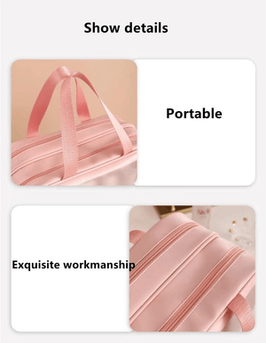 سهلة الحمل: حقيبة مستحضرات التجميل اللطيفة مريحة للتعبئة والحمل في حقيبة اليد أو حقيبة الظهر أو الأمتعة. رائعة للسفر أو في الهواء الطلق أو رحلات العمل أو التخييم أو السفر أو صالة الألعاب الرياضية.