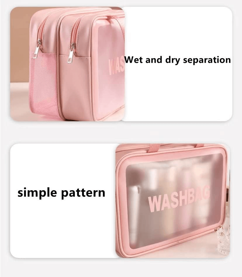 سعة كبيرة: تحتوي على مساحة واسعة لمستلزمات الإجازة مثل الشامبو ومعجون الأسنان وفرشاة الأسنان وإكسسوارات الحلاقة والمناشف وما إلى ذلك. وتأكد من أن مكياجك أو مستلزماتك منظمة في حياتك اليومية والسفر. لا تقلق أبدًا بشأن فوضى مستلزماتك وغيرها من العناصر.