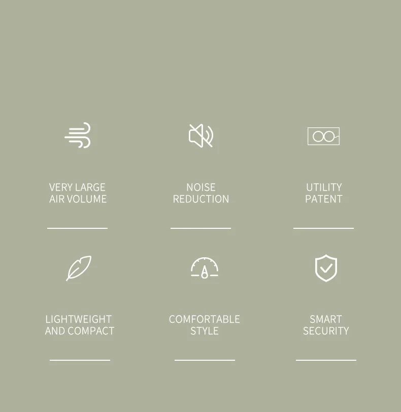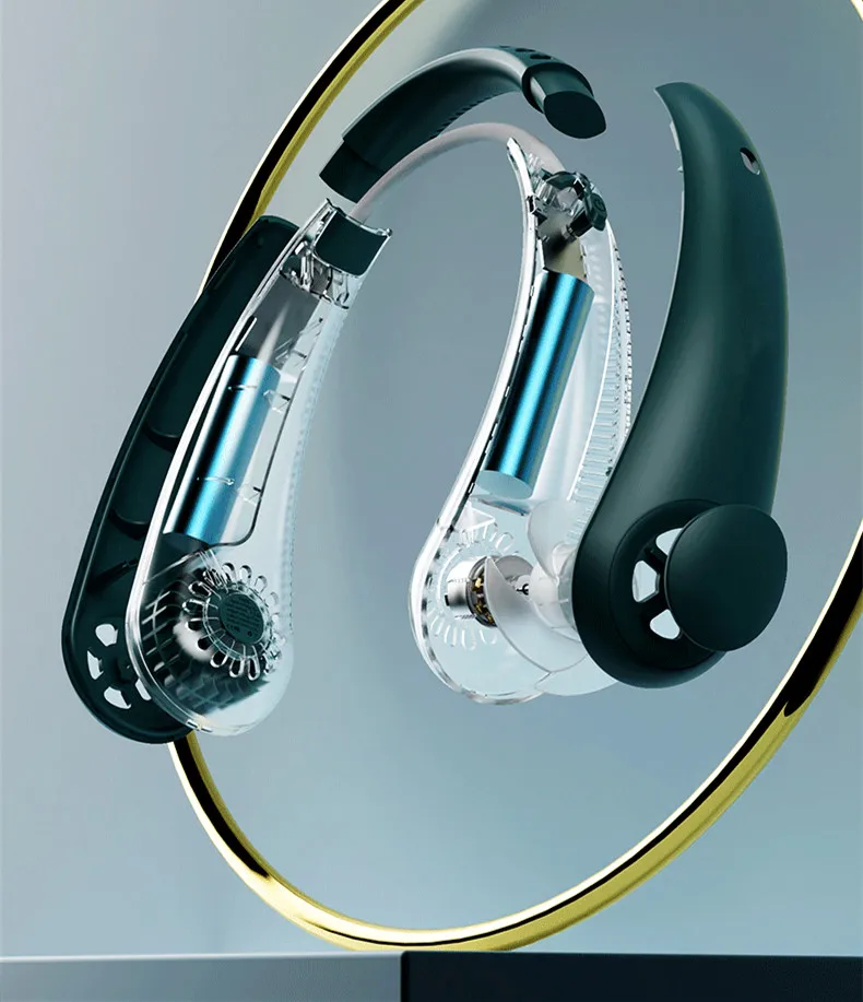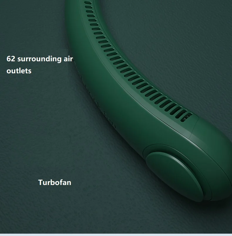 - تشغيل بدون استخدام اليدين: تم تصميم المروحة ليتم ارتداؤها حول رقبتك، مما يترك يديك حرة لأداء مهام أخرى أثناء الاستمتاع بنسيم بارد.
