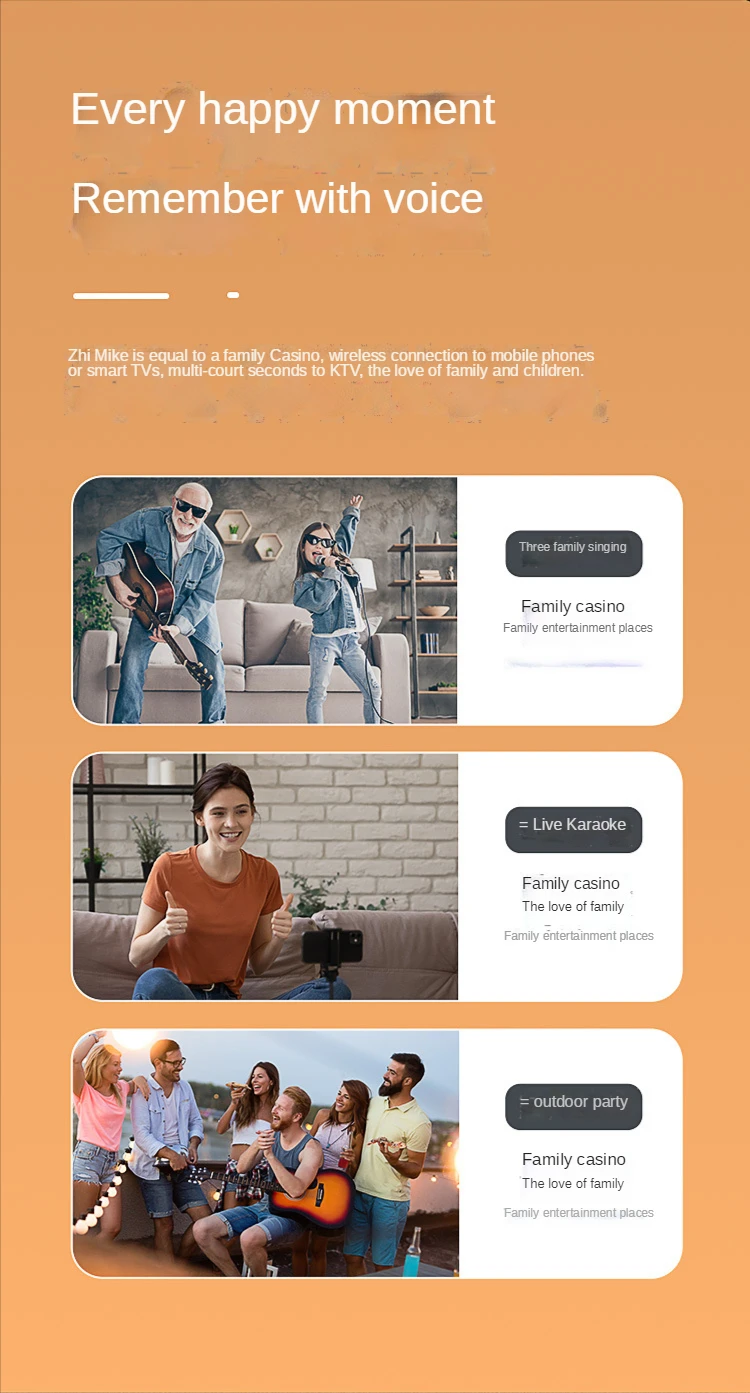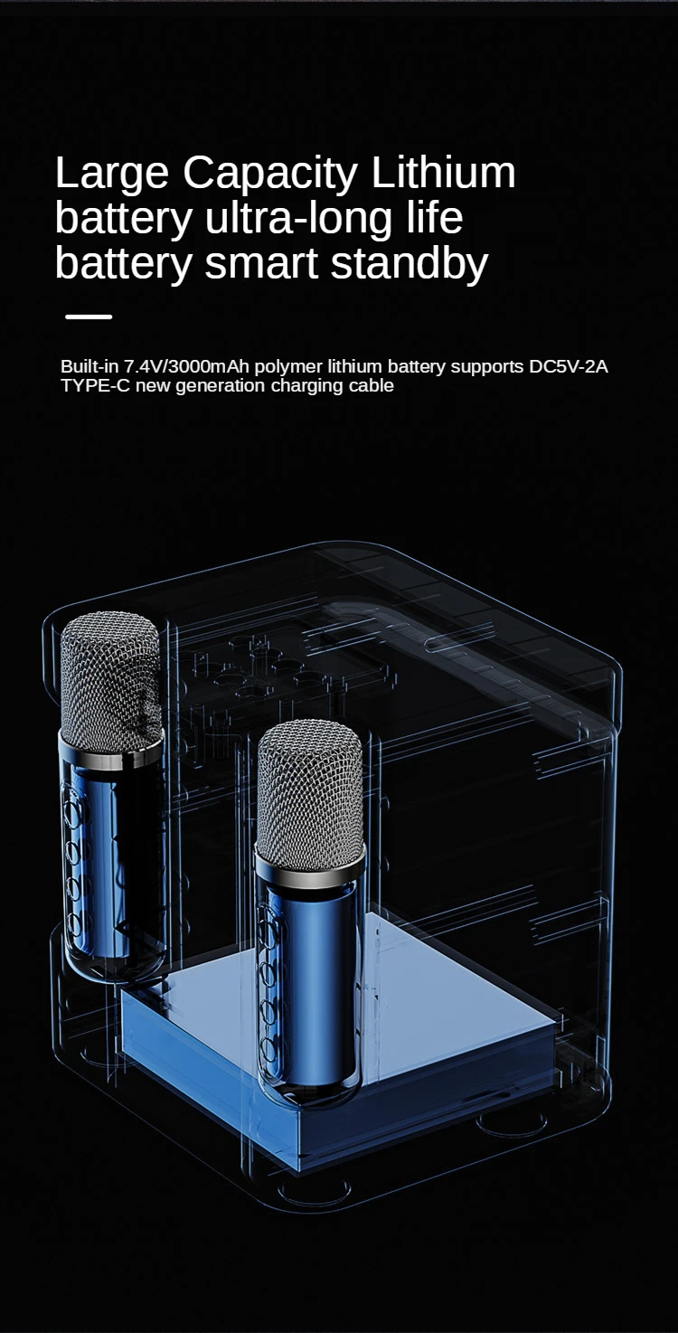 تحتوي السماعات والميكروفونات على بطارية قابلة لإعادة الشحن وذات سعة عالية، والتي يمكنها أن توفر لك تشغيل الموسيقى والغناء لفترة طويلة دون توقف.